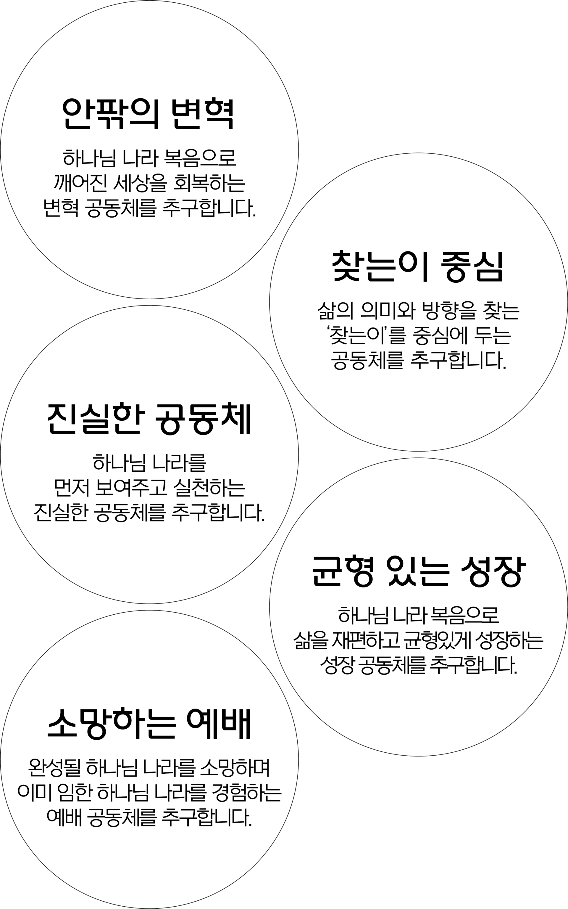 5개의 교회(나들목동행교회, 나들목양평교회, 더불어함께교회, 서로교회, 작은이들의교회)와 함께 네트워크를 이루고 있습니다. 꿈꾸는 공동체와 함께 6개 교회가 건강한 생태계를
